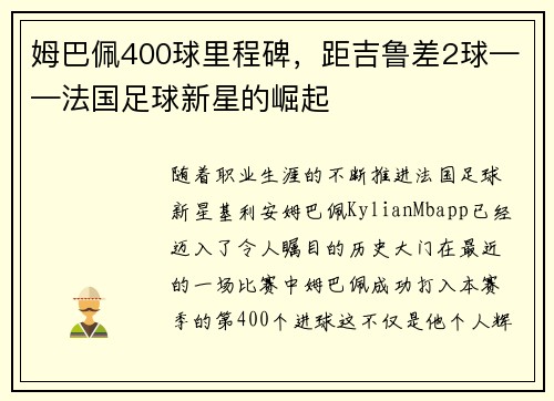 法国队:荣耀之路的辉煌起点 法国队,这支拥有悠久历史和辉煌战绩的足球豪门,自成立之初便注定不平凡。从20世纪初的萌芽,到成为世界足坛的璀璨明星,法国队的每一步发展都镌刻着国家的荣耀与足球的精神传承。 ...
